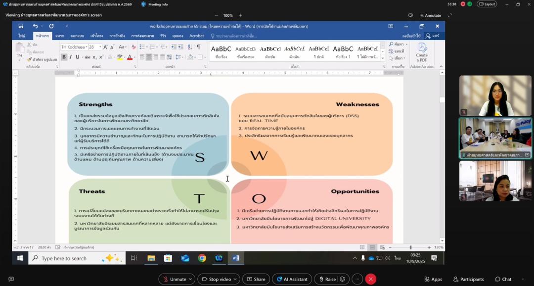 ฝ่ายยุทธศาสตร์และพัฒนาคุณภาพองค์กร จัดประชุมเพื่อวางแผนกลยุทธ์และจัดทำแผนปฏิบัติการ ประจำปีงบประมาณ พ.ศ.2569 เพื่อขับเคลื่อนตามแนวทาง TSU in Becoming