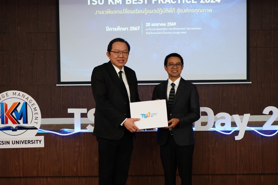 ฝ่ายยุทธศาสตร์และพัฒนาคุณภาพองค์กร จัดโครงการ “TSU KM Best Practice Day 2024: งานเวทีแลกเปลี่ยนเรียนรู้แนวปฏิบัติที่ดี สู่องค์กรคุณภาพ” เมื่อวันที่ 20 มกราคม พ.ศ. 2569 เวลา 08.00 - 16.00 น. ณ ห้องประชุมแสงสุริยา คณะศึกษาศาสตร์ มหาวิทยาลัยทักษิณ วิทยาเขตสงขลา เพื่อส่งเสริมการจัดการความรู้ (Knowledge Management: KM) ให้เป็นกลไกสำคัญในการพัฒนาองค์กรสู่ความเป็นเลิศอย่างยั่งยืน โดยได้รับเกียรติจาก รองศาสตราจารย์ ดร.ณฐพงศ์ จิตรนิรัตน์ อธิการบดีมหาวิทยาลัยทักษิณ เป็นประธานในพิธีเปิด